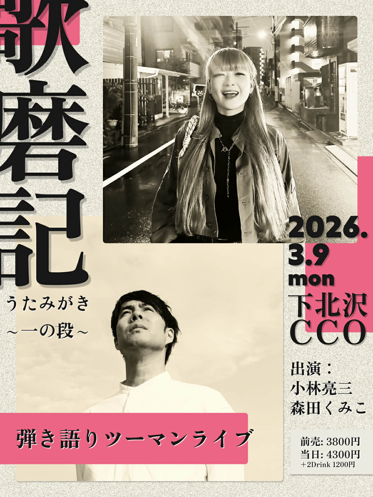 CHARGE : 前売 ¥3,800- / 当日 ¥4,300- (+2drink¥1,200)