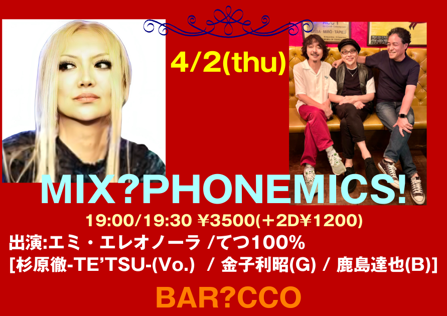 CHARGE : 前売 ¥3,500- / 当日 ¥- (+2Drink¥1,200)