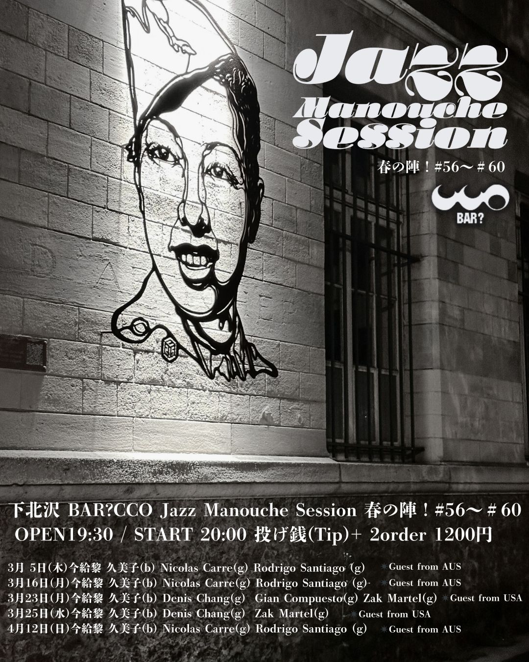 CHARGE : 前売 ¥- / 当日 ¥- (2Drink¥1,200)+投げ銭(Tip)