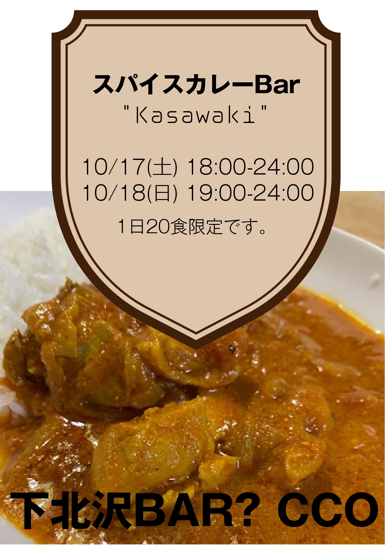| 17 | sat | "スパイスカレーBar Kasawaki"