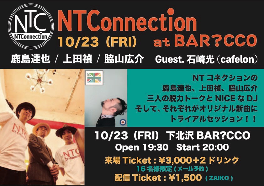| 23 | fri | "NTコネクションの夕べ at BAR?CCO"三人の脱力トークとNICEなDJ。