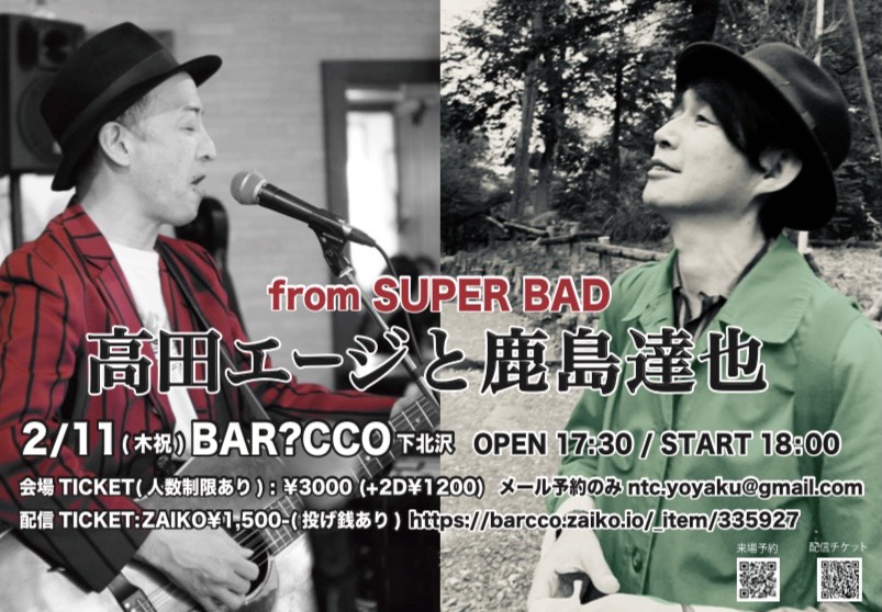 | 13 | sat | 2/13(土)の下北沢BAR?CCOでのCRZCRZの2周年ワンマンライブは新型コロナ感染防止、緊急事態宣言延長のため、5/15(土)に延期となりました。ご予約済の方はそのまま振替とさせて頂きます。 なお、4thシングル「フォークでロケンロー」は、下北沢BAR?CCOをお借りして2/13(土)18時~20時の間で限定販売させて頂きます!モーヤンがお待ちしております |