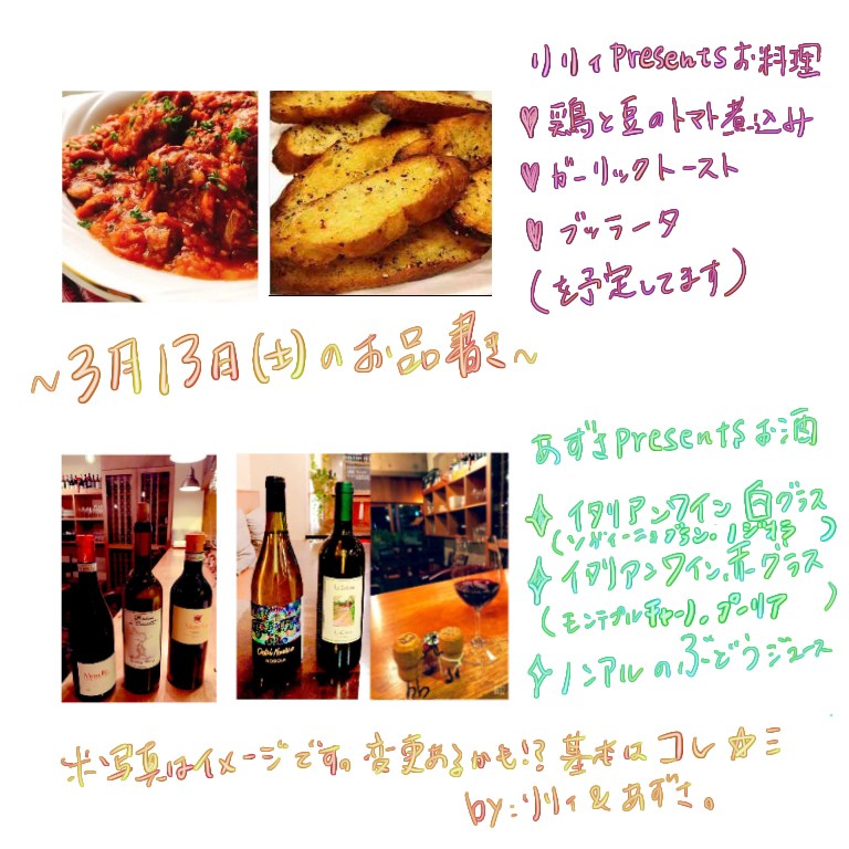 FOOD : ニラ餃子(6ヶ¥500-)/炙り茹で豚¥800-/etc...DRINK : プレミアムモルツ¥500-/ワイン¥500-/etc...OPEN:16:00-/CLOSE:20:00-(LO:19:00-) |
