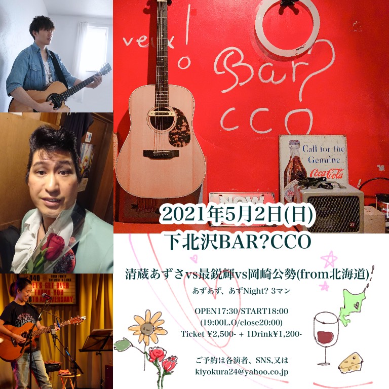 出演:清蔵あずさ/最鋭輝*東京都の「まん延防止重点措置」により時間が変更となりました。OPEN 17:30 / START 18:00 *19:00-L.O/20:00-CLOSE ※緊急事態宣言や時短などで変更あり、随時更新 ご予約は各演者にお願いいたします。 |
