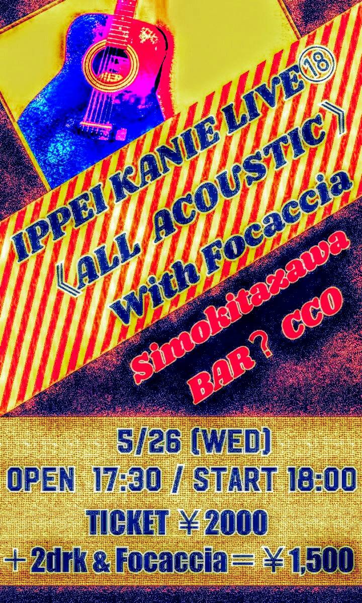 出演:下山淳*東京都の「まん延防止重点措置」により時間が変更となりました。OPEN 17:00/START 18:00 |