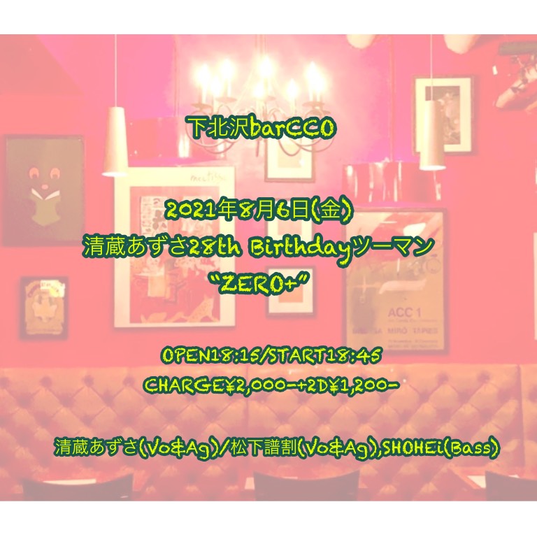 出演:清蔵あずさ(Vo&Ag)/松下譜割(Vo&AG)&SHOHEi(Ba)Open 18:15-/ Start 18:45- ご予約はメール、又は各演者Twitterにてお願いいたします! kiyokura24@yahoo.co.jp |